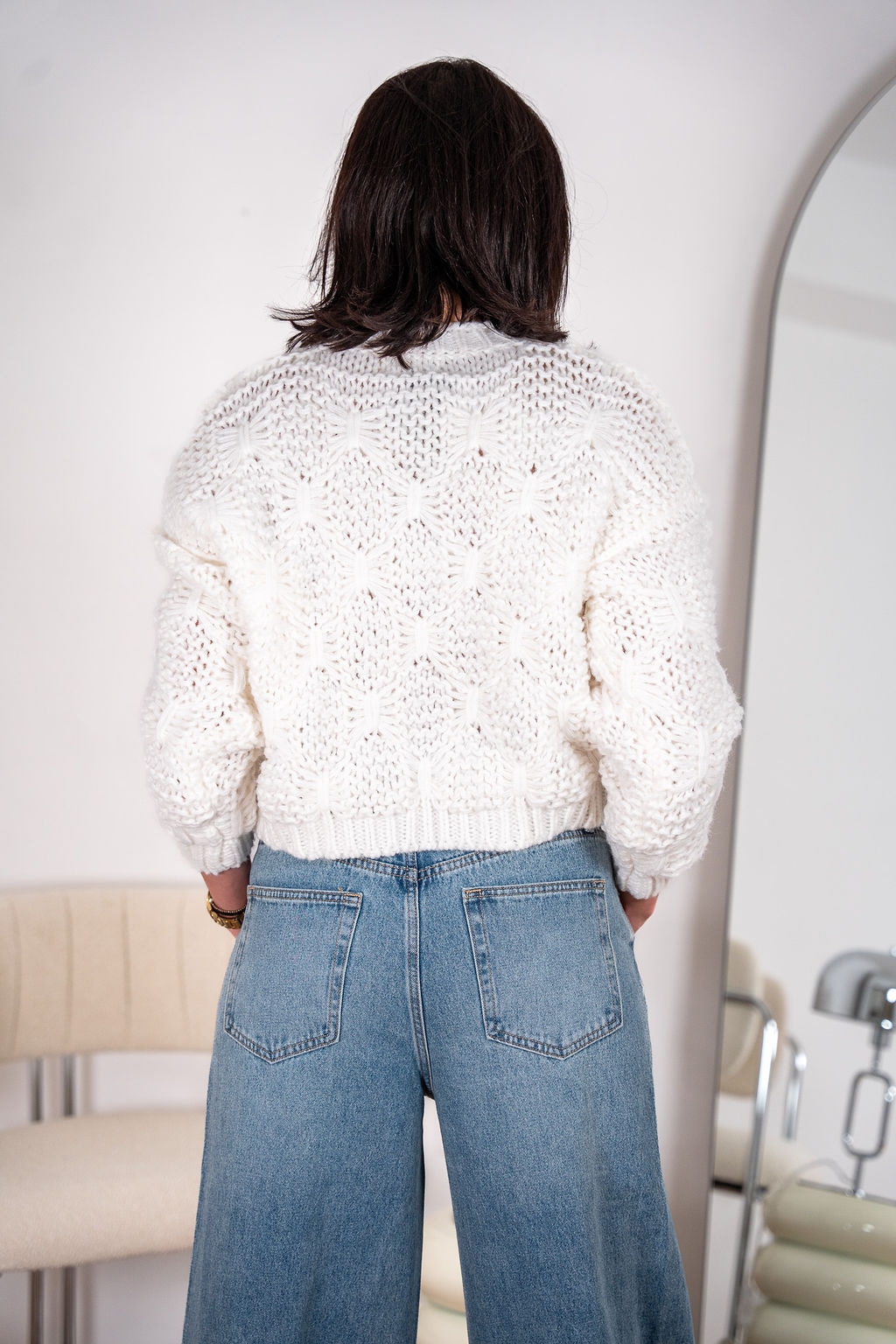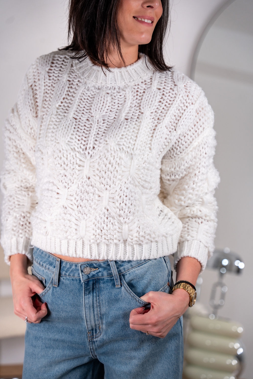 Pull torsadé femme en grosse maille, mi-polyester recyclé