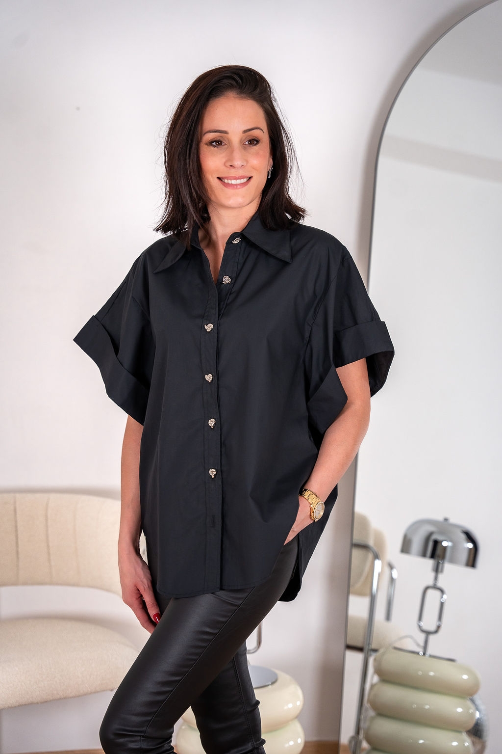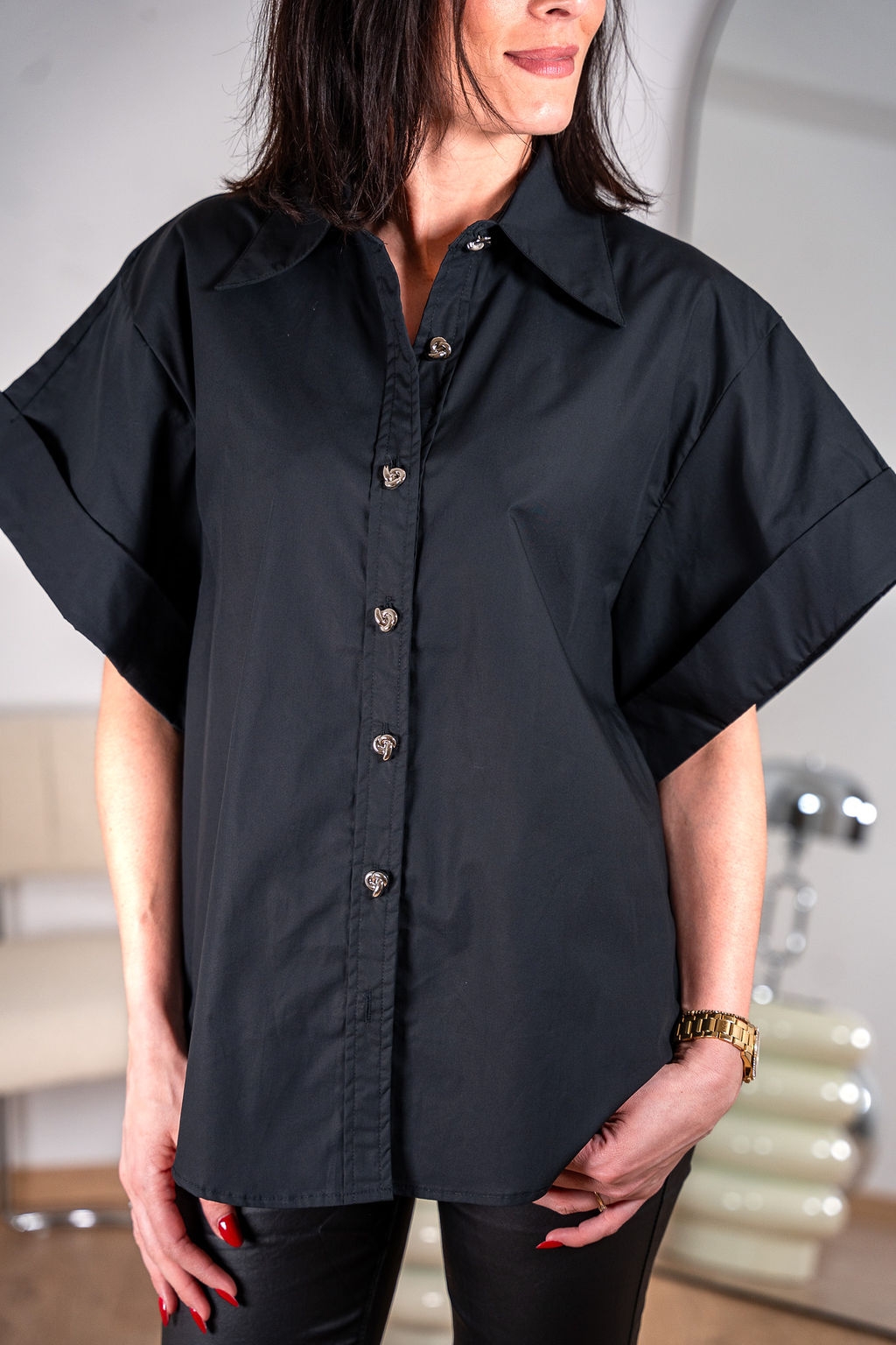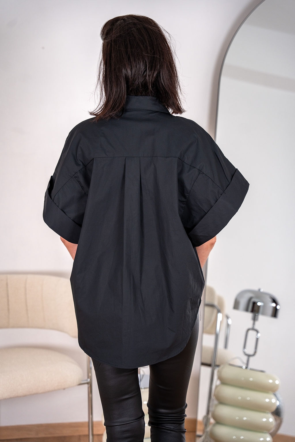 CHEMISE NOIRE MANCHES COUTES DESTRUCTUREE